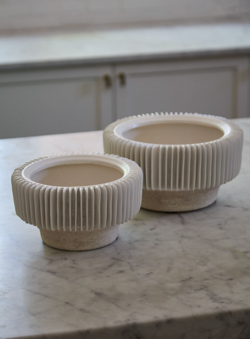 Handmade with two-toned glaze and thin slices of white ceramic, the Grayton Compote is a one-of-a-kind piece beautiful enough to stand alone as art, or for your next floral design